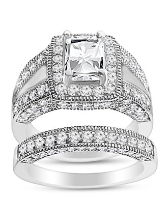 1 Carat Cz Engagement Ring With Wedding Band Split Shank Cubic